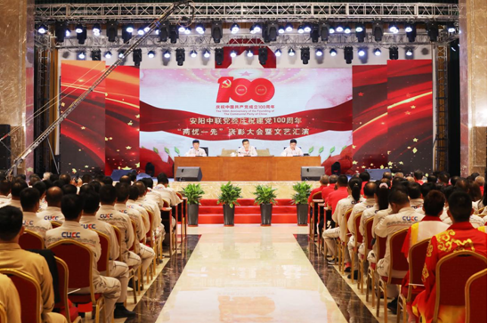 為慶祝中國共產(chǎn)黨建黨100周年, 6月26日上午,安陽中聯(lián)黨委組織召開慶祝建黨100周年“兩優(yōu)一先”表彰大會(huì)暨文藝匯演,安陽中聯(lián)全體黨員、職工代表、海工廠退休黨員代表共計(jì)200余人參加會(huì)議。