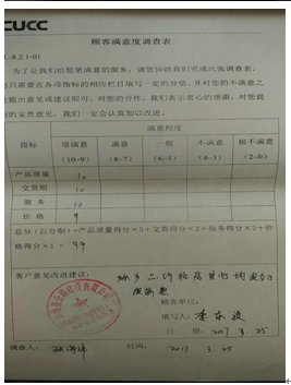 4、多渠道受理、高效率解決客戶投訴。公司開通投訴專線、投訴聯系單等方式受理客戶投訴并24小時內響應,由專人負責處理,投訴處理率達100%。投訴處理后,定期跟進客戶使用產品的情況,形成客戶投訴閉環(huán)管理。